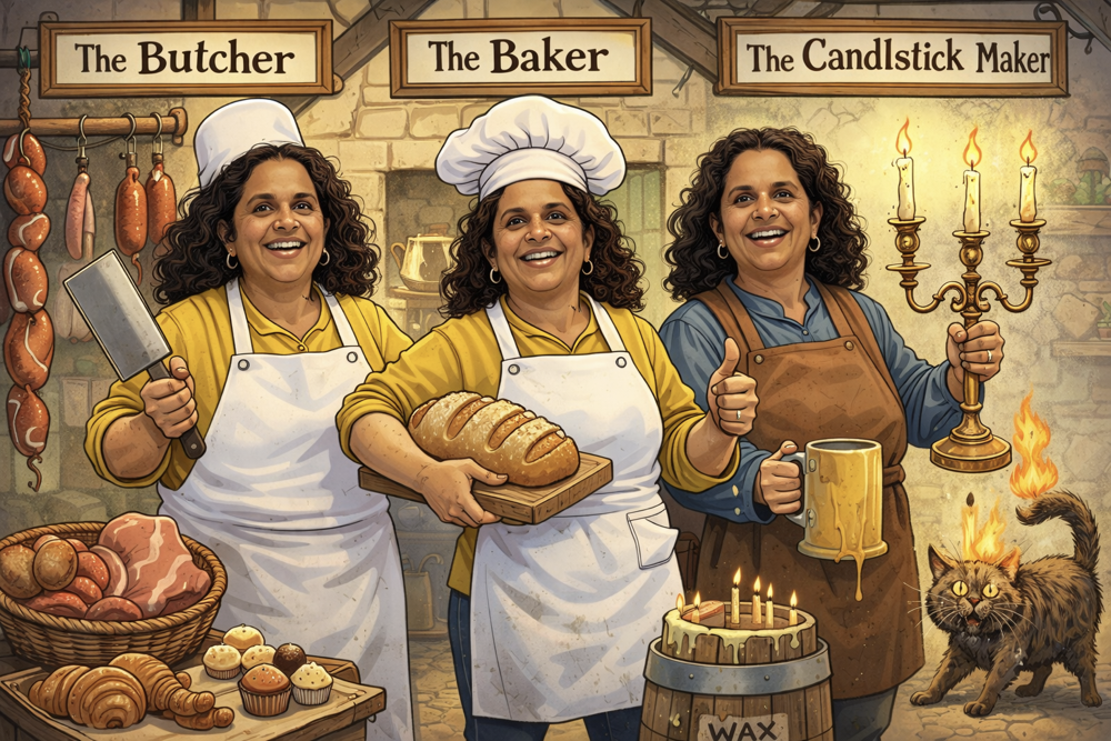 3 thoughts on “The Butcher, The Baker, The Candlestick Maker
